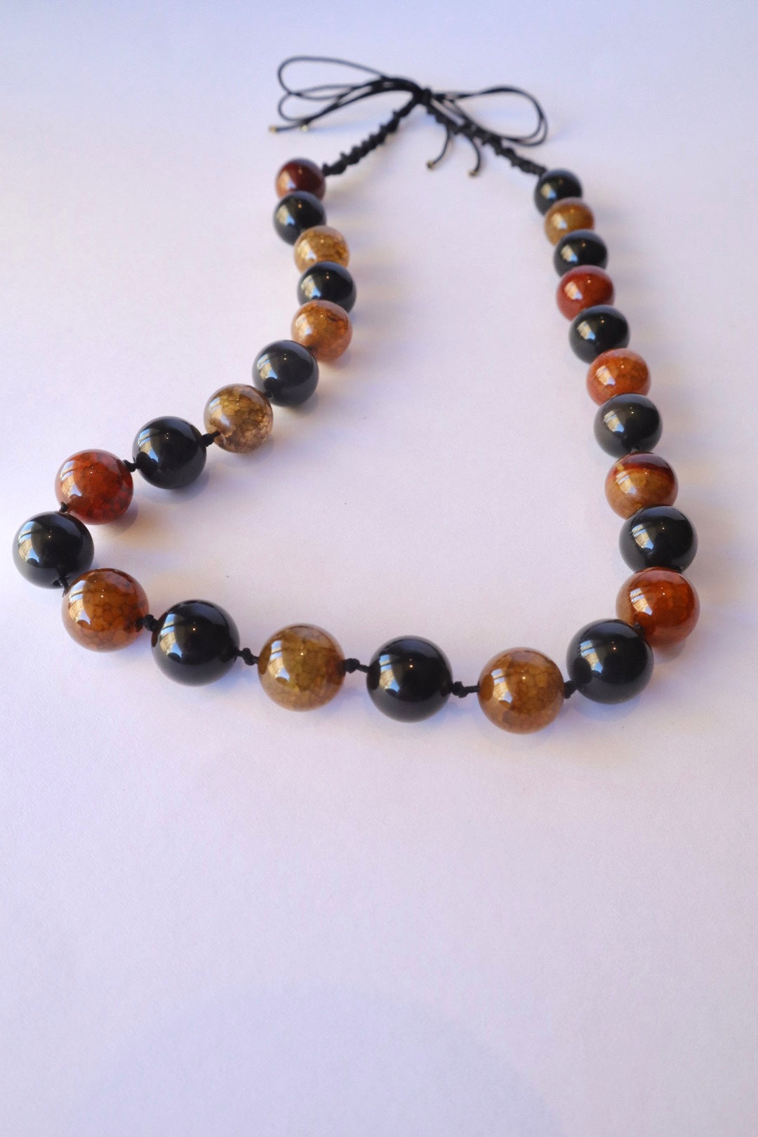 Collar de piedras naturales en contraste con hilo anudado, terminación en macrame.